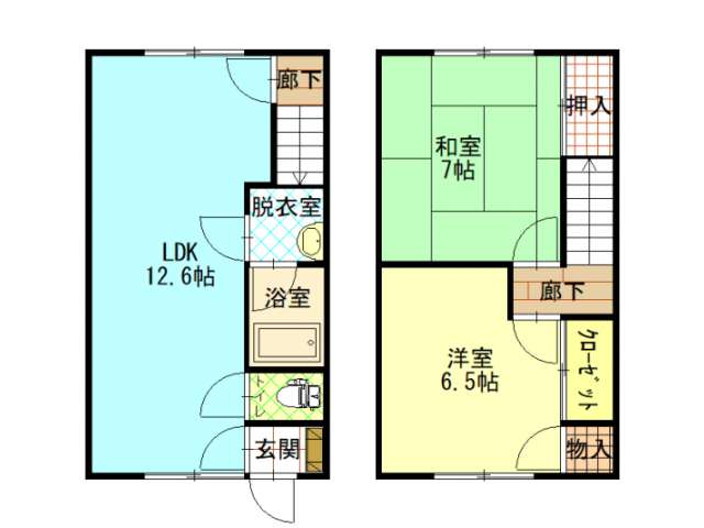 | 詳細間取 | 2LDK (洋6.5帖×1、和7帖×1、LDK12.6帖) | ||